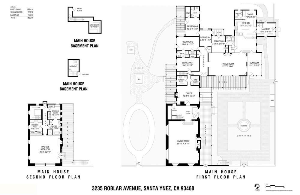 Five bedrooms, all with adjacent baths; a sitting room, office, and a nearly 1,000 square-foot living room with open-beam ceiling and impressive stone fireplace complete the main floor of the home.